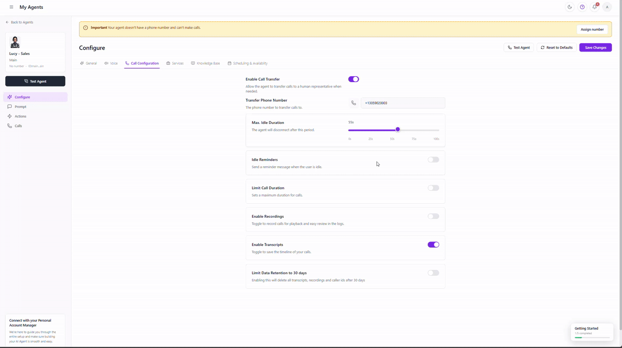 Easily customize your AI agent's behavior, responses, and workflows. Edit settings in real-time and adapt to your business needs instantly.