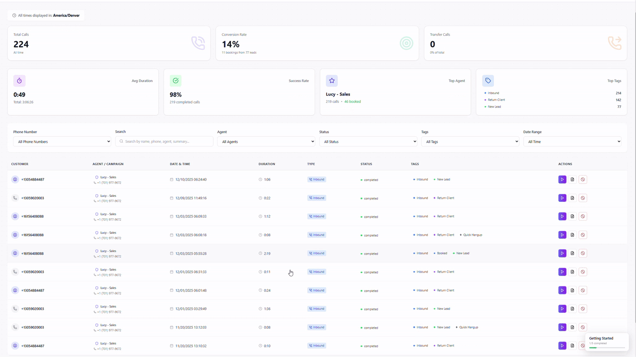 Access full details of every conversation - recordings, transcripts, duration, and outcomes. Review and manage all your calls from one powerful dashboard.