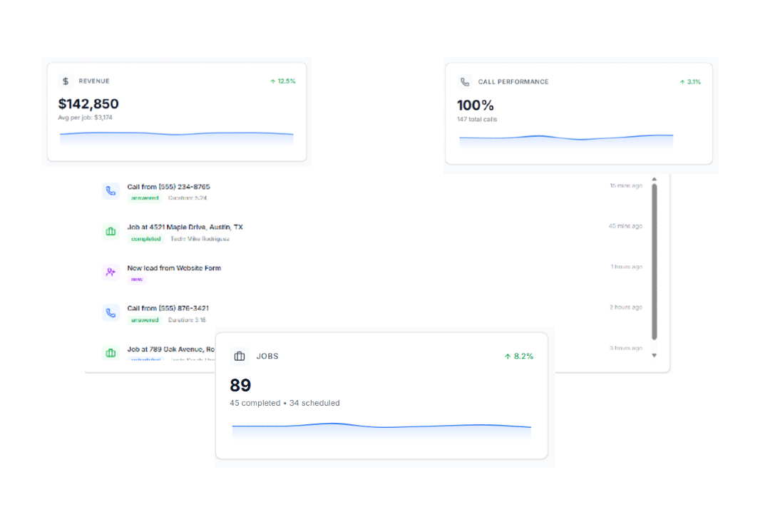 Calls answered. Jobs booked. Revenue growing. All while you focus on your work.