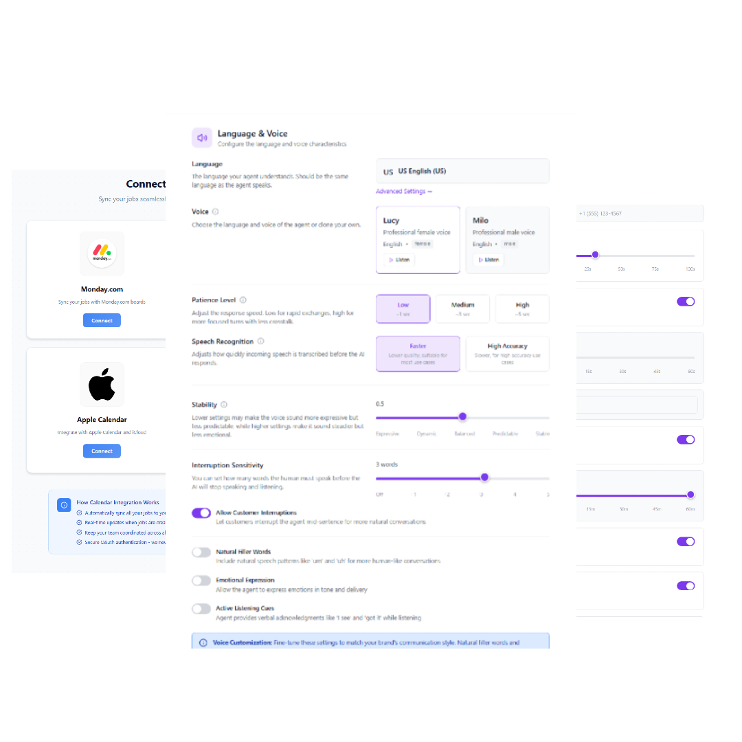 Easily customize your AI agent's behavior, responses, and workflows. Edit settings in real-time and adapt to your business needs instantly.